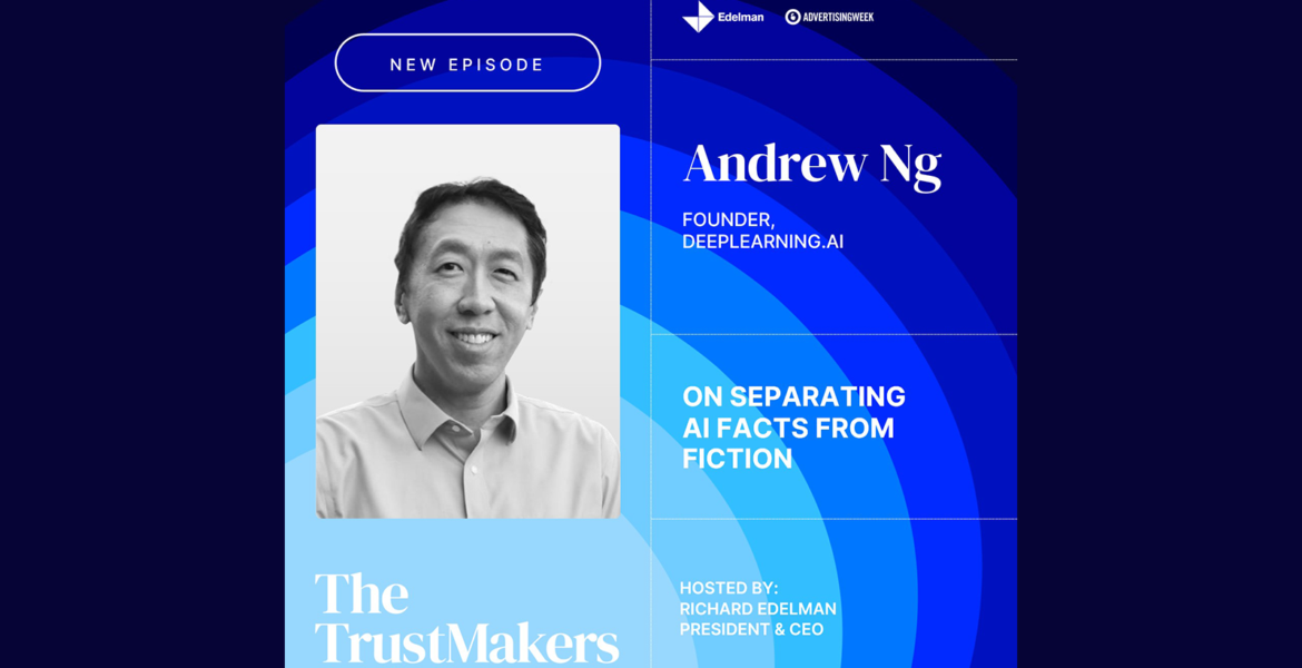 Andrew Ng, founder of Coursera and Deeplearning.AI, joins Edelman CEO Richard Edelman to discuss what it will take to build trust in artificial intelligence at scale. They explore how AI is moving from experimentation to everyday use, why media narratives and sensational headlines have led to public fear and misunderstanding of AI, and how leaders can ensure AI innovation delivers real value for stakeholders.