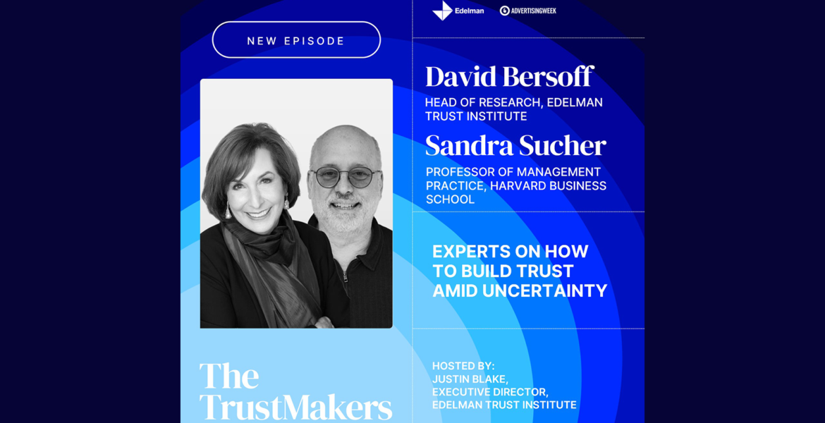 Sandra Sucher, Professor of Management Practice at Harvard Business School, and David Bersoff, Head of Research at the Edelman Trust Institute, join Justin Blake, Executive Director of the Edelman Trust Institute, to discuss their recent article from HBR.org on what it takes for leaders to build stakeholder trust amid heightened uncertainty. The conversation examines why stakeholders increasingly look to business for stability, how transparency and shared sacrifice can reduce anxiety, and why trust brokering has become an essential leadership skill.