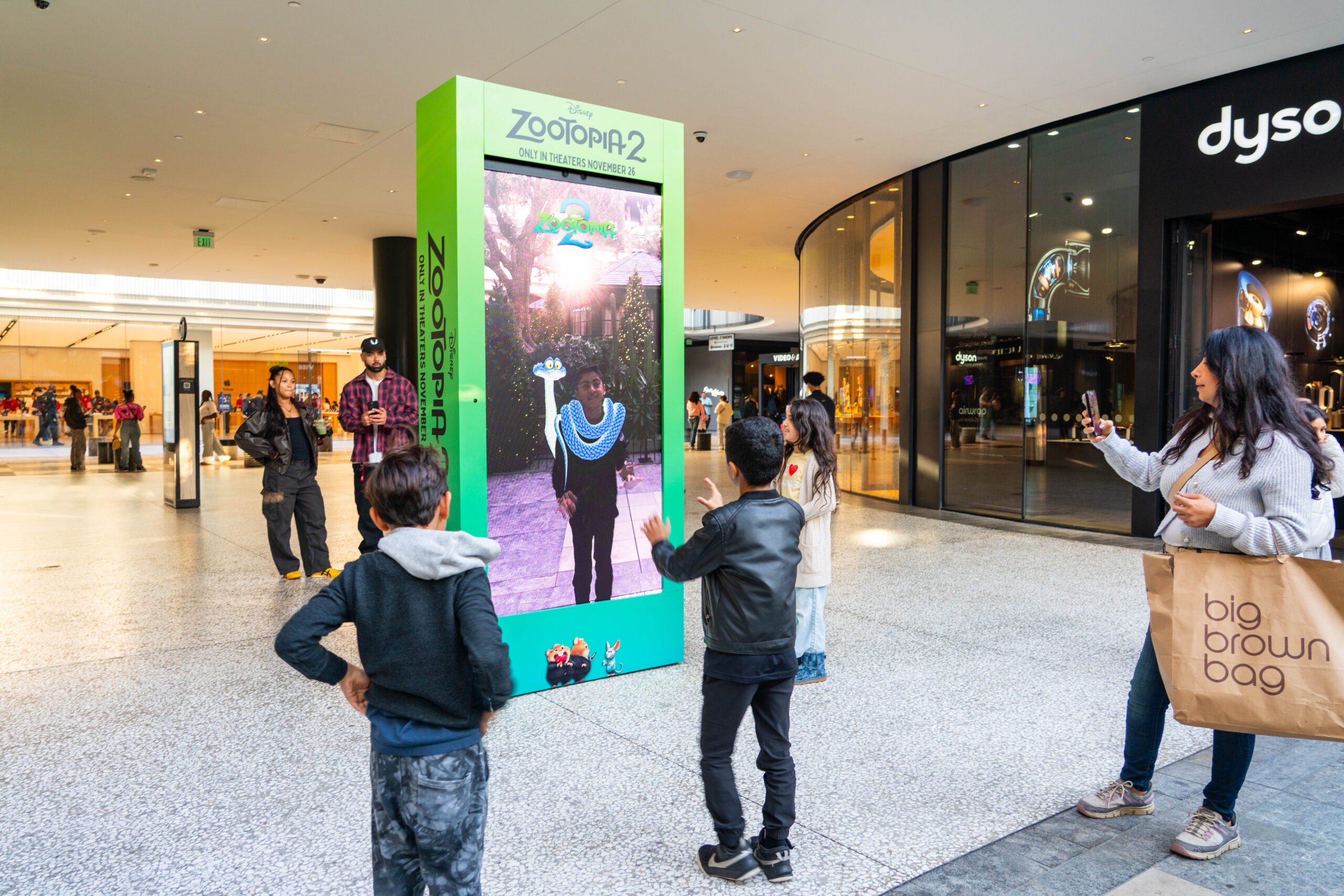 Westfield Rise partnered with Disney and Snap to transform AMC Plaza into a fully realized Zootopia streetscape, complemented by Snap‑powered AR lenses. Families interacted with characters, immersive sets, and on‑site play zones, while Disney executed a broader citywide OOH and AR rollout.