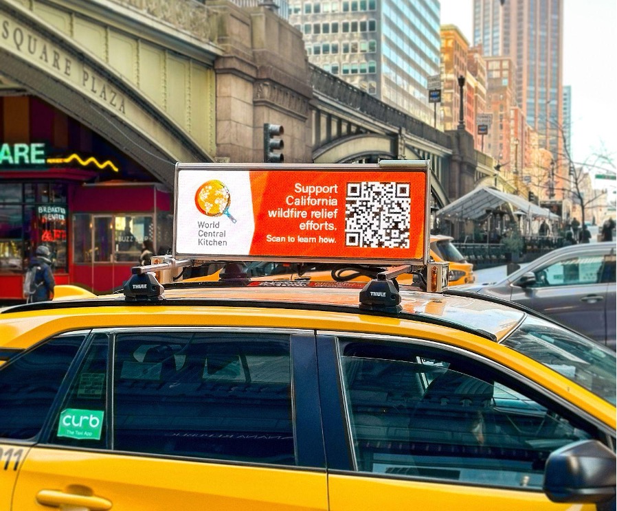 Taxi-top media is OOH at eye level—moving where people gather and decide: outside arenas post-game, through dining districts at peak dinner, across business corridors at commute times. It’s a moving, street-level digital canvas that pairs directional messages with mass coverage across neighborhoods, soaring above traffic and catching the pedestrian’s eye. As part of an OOH mix, taxi tops extend frequency, fill coverage gaps between fixed assets, and reach riders, walkers, and drivers at the same moment of choice.