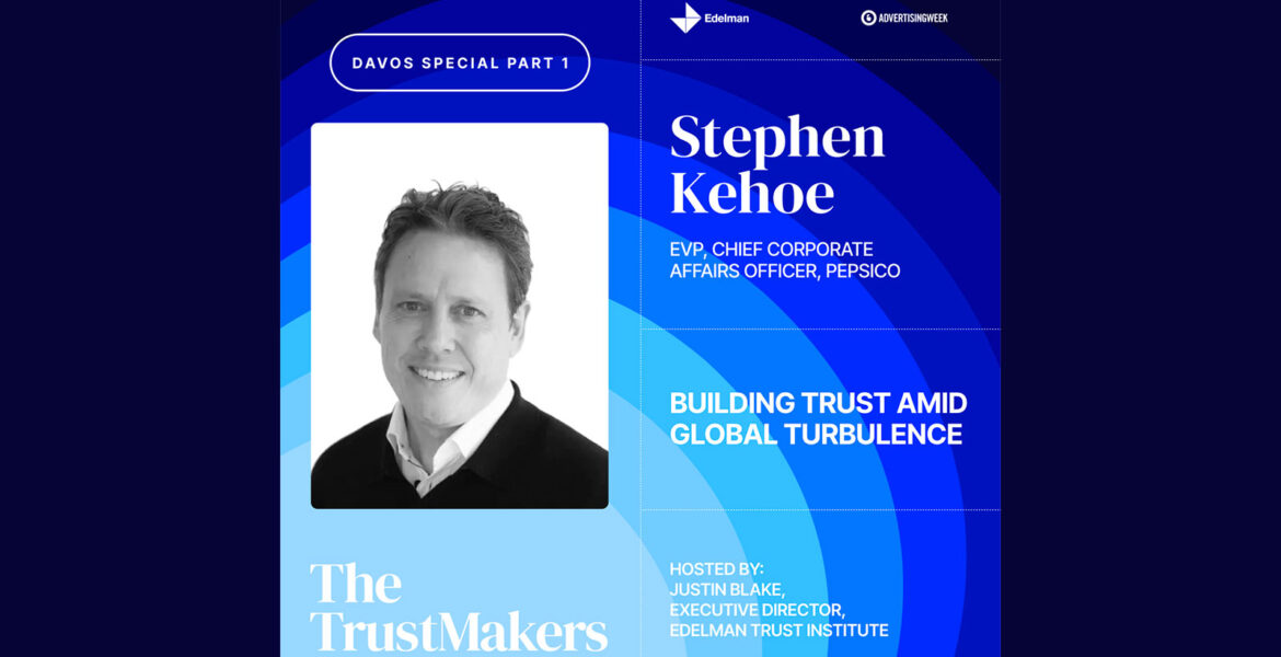 Stephen Kehoe, EVP and Chief Corporate Affairs Officer, PepsiCo, joins Justin Blake, Executive Director of the Edelman Trust Institute, at the World Economic Forum in Davos for a conversation on trust, leadership, and global responsibility. Drawing on findings from the 2026 Edelman Trust Barometer, they discuss why trust is increasingly earned locally, how multinational companies balance global scale with local credibility, and what it means for business to broker trust amid economic pressure, misinformation, and geopolitical uncertainty.